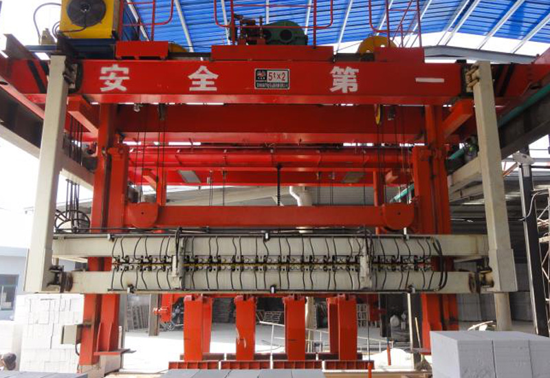 加氣塊掰板機(jī)由橫梁、豎梁、掰板部件和提升小車等部件組成。